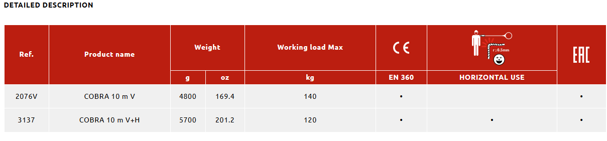 - ref.3137, vertical and horizontal/inclined use with an external energy absorber.